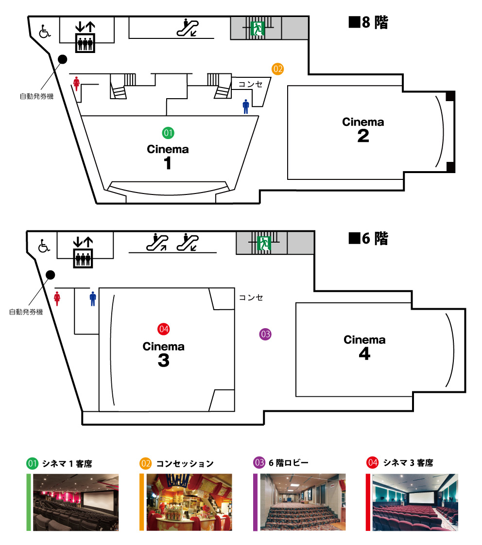 | スクリーンサイズ | シネマスコープサイズ(縦5.2m×横12.2m)/ヴィスタサイズ(縦5.2m×横9.6m) |