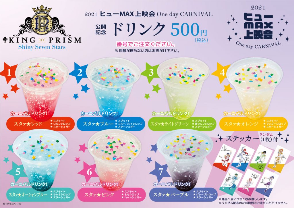 【ヒューMAX上映会 One day CARNIVAL】『「KING OF PRISM -Shiny Seven Stars-」劇場編集版 第Ⅰ章~第Ⅳ章』ドリンク・グッズ販売に関するご案内