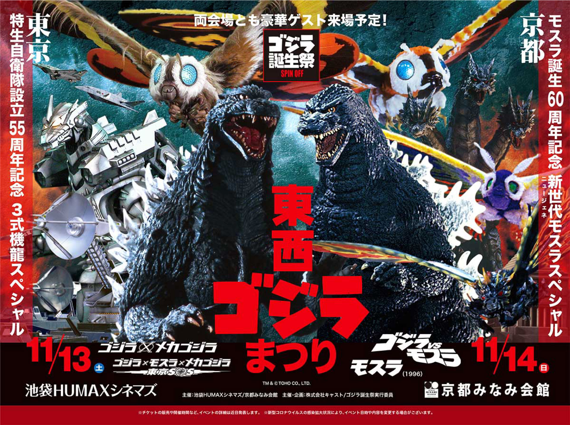 京都会場は、生誕60周年を迎えたモスラを大フィーチャー。モスラを平成の世に甦らせ、新たなモスラ像を打ち立てた『ゴジラVSモスラ』、96年版『モスラ』の2作品を上映します。