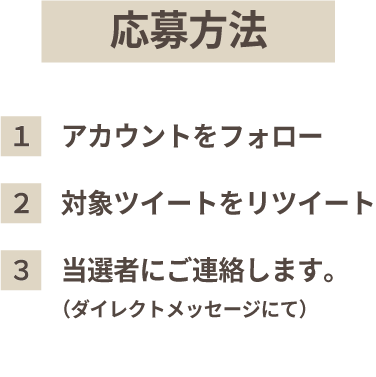 - 当選連絡のダイレクトメッセージ記載の配送先入力締切日までに入力がない場合、また、当選者の長期不在や、賞品お届け先ご住所や転居先が不明等の理由により賞品のお届けが出来ない場合は当選を無効とさせていただきますので予めご了承ください。