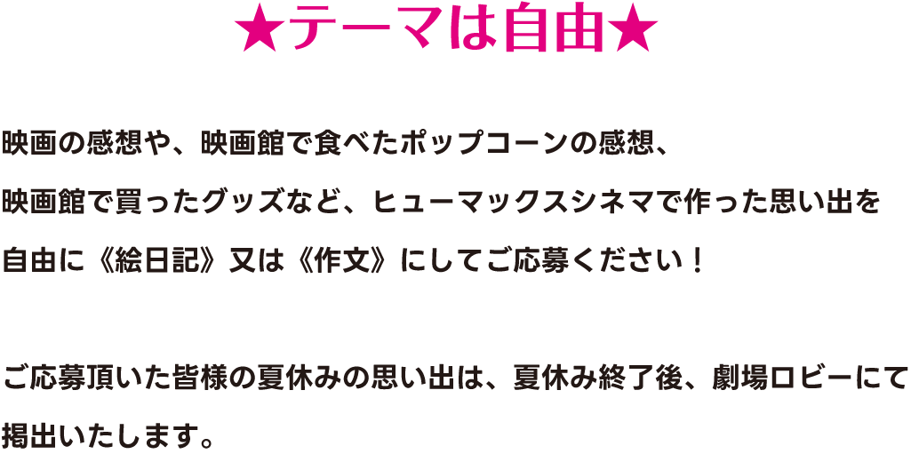 夏休みの思い出をヒューマックスシネマで作ろう!夏休みの”思い出”大募集!