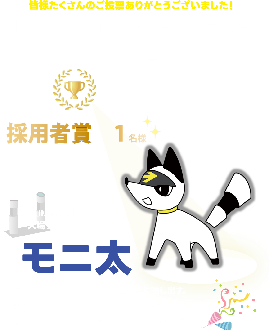「映画館で見る映画」の魅力を広めたい気持ちが普段からあり、自分が生み出したキャラクターが少しでもそれに貢献できれば良いなと思い応募しました。