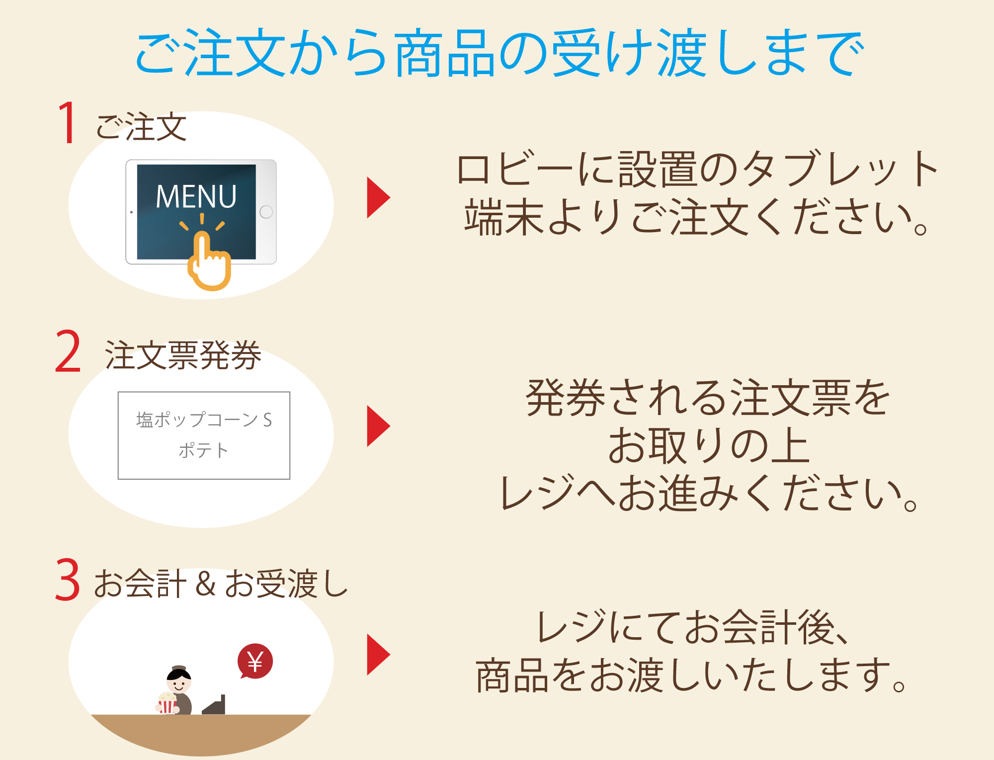 売店でのご注文が便利に変わりました。ロビー設置のタブレットで、ゆっくりと注文をお選びいただけます。