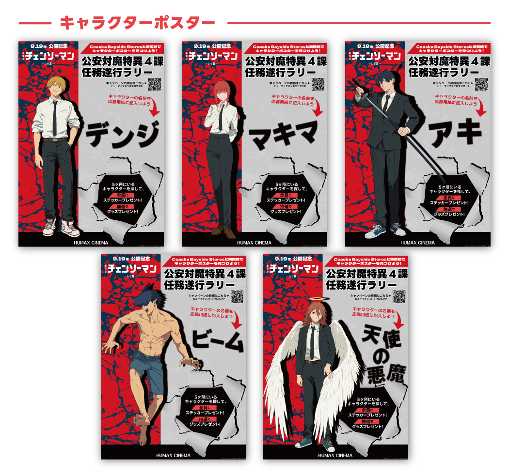 劇場版『チェンソーマン レゼ篇』公開記念 !Coaska Bayside Storesと映画館でキャラクターポスターを見つけよう!公安対魔特異4課 任務遂行ラリー