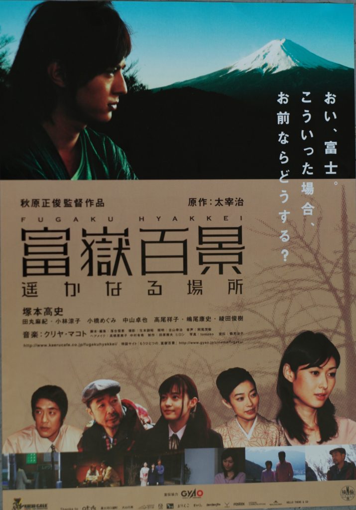太宰治の名作「富嶽百景」を現代にアレンジした『新感覚ブンガク映画』。主演は若手実力派ナンバーワンとの呼び声高い塚本高史(「木更津キャッツアイ」)、そして今作が映画初出演となる田丸麻紀(TV「けものみち」)がヒロインを演じている。