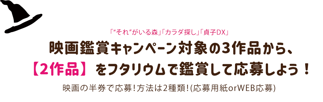 (※応募には3作品のうちいずれか2作品をフタリウムで鑑賞した映画の半券が必要です。)