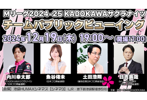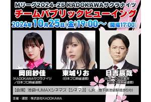 シアターレンタル 活用事例(アニメ) 2026.02.17 Mリーグ2025-26 KADOKAWAサクラナイツチーム PV 岡田紗佳×こうちゃん×日吉辰哉出演 2025.12.23 Mリーグ2025-26 KADOKAWAサクラナイツチーム PV 堀慎吾×じろう(シソンヌ)×日吉辰哉出演 2025.11.25 Mリーグ2025-26 KADOKAWAサクラナイツチーム パブリックビューイング 2025.10.10 Mリーグ2025-26KADOKAWAサクラナイツチーム パブリックビューイング 2025.09.12 KADOKAWAサクラナイツ 2025-26シーズン壮行会 2025.02.25 Mリーグ2024-25 KADOKAWAサクラナイツ チームパブリックビューイング 2024.12.19 Mリーグ2024-25 KADOKAWAサクラナイツ チームパブリックビューイング 2024.11.09 VAGファンミーティング #2 2024.10.25 Mリーグ2024-25 KADOKAWAサクラナイツ チームパブリックビューイング 2024.07.28 VAGファンミーティング #1 2024.01.12 KONAMI麻雀格闘倶楽部×KADOKAWAサクラナイツ 合同チームPV 2024.02.22 Mリーグ2023-2024 KADOKAWAサクラナイツ スペシャルチームPV ▲ TOPへ