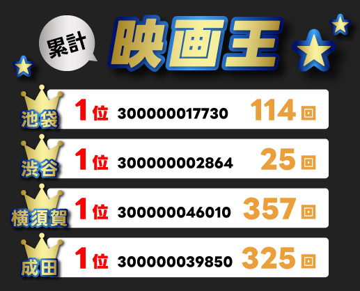ポイントカード会員の皆様、会員番号でご自分が映画王になっているかご確認ください!