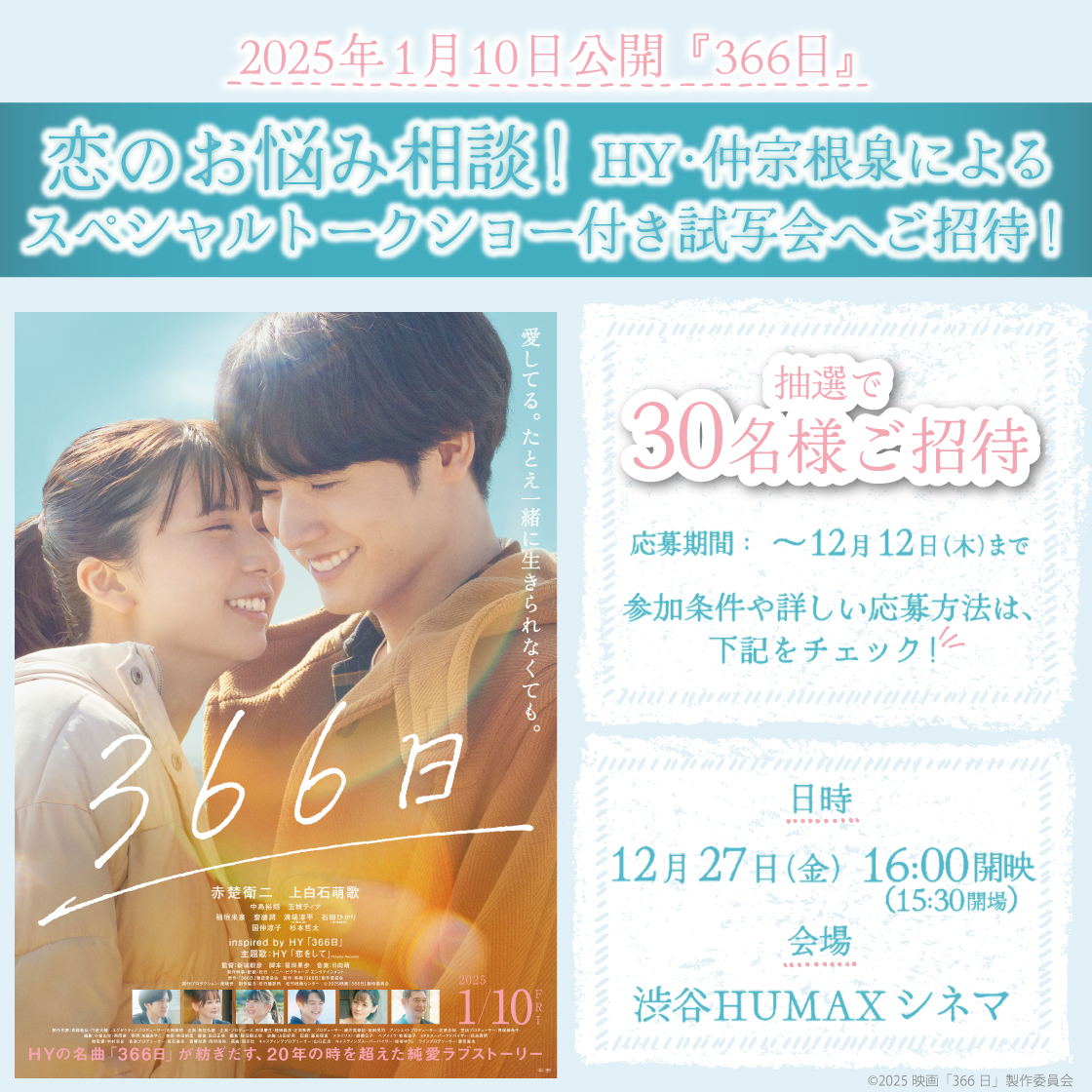 12月27日(金)恋のお悩み相談!HY・仲宗根泉によるスペシャルトーク付き試写会へご招待!公式SNSでキャンペーン実施中!(イベント終了)
