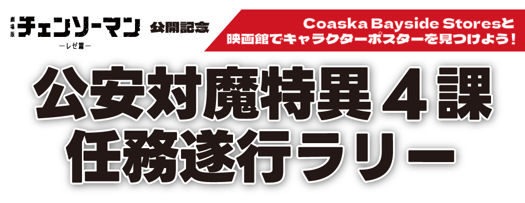 劇場版『チェンソーマン レゼ篇』公開記念 !Coaska Bayside Storesと映画館でキャラクターポスターを見つけよう!公安対魔特異4課 任務遂行ラリー
