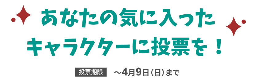 あなたが応援したくなったキャラクターを下の「投票フォーム」よりご投票いただきたくよろしくお願いいたします。