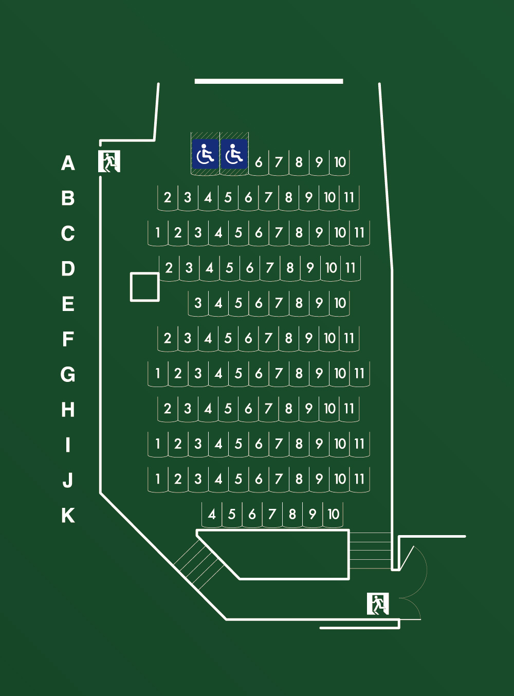 座席数:106 車椅子スペース:2 避難口:2